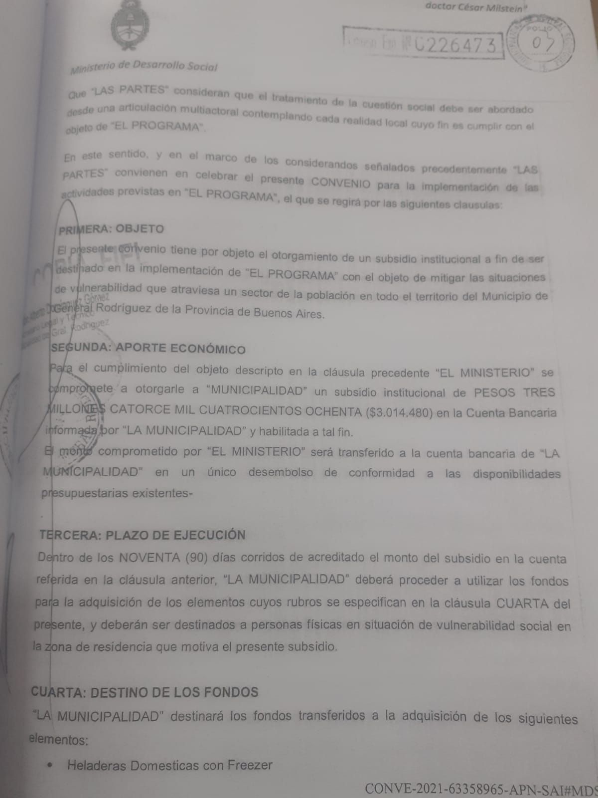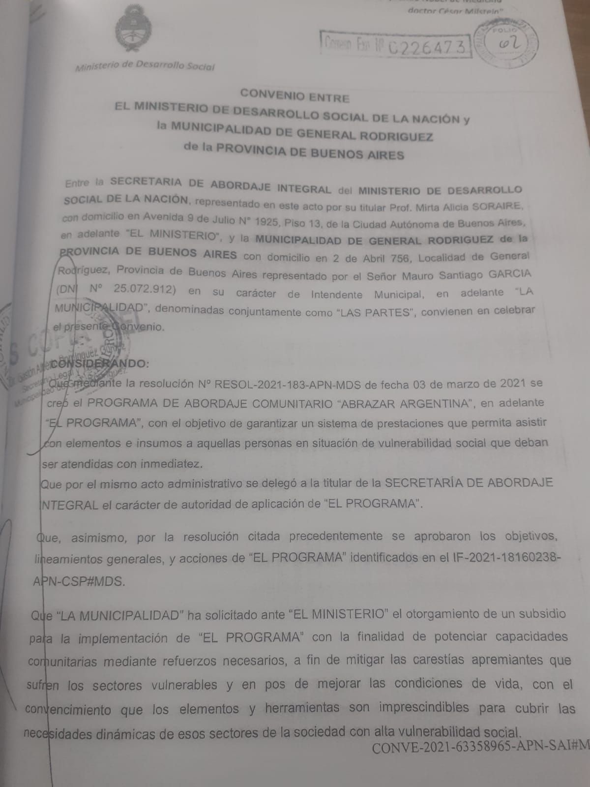 El convenio entre el Ministerio de Desarrollo Social y la Municipalidad de Gral. Rodríguez: