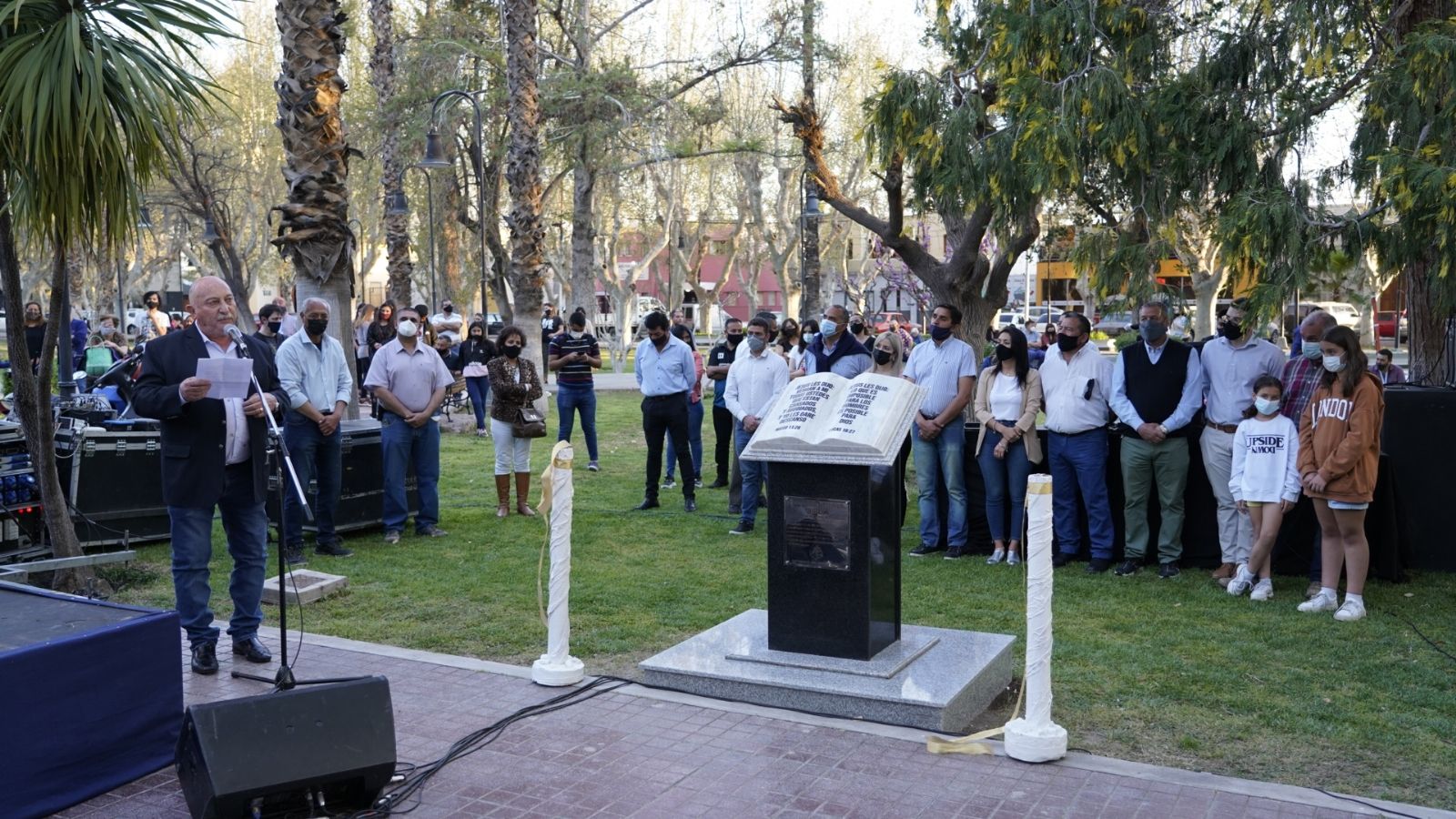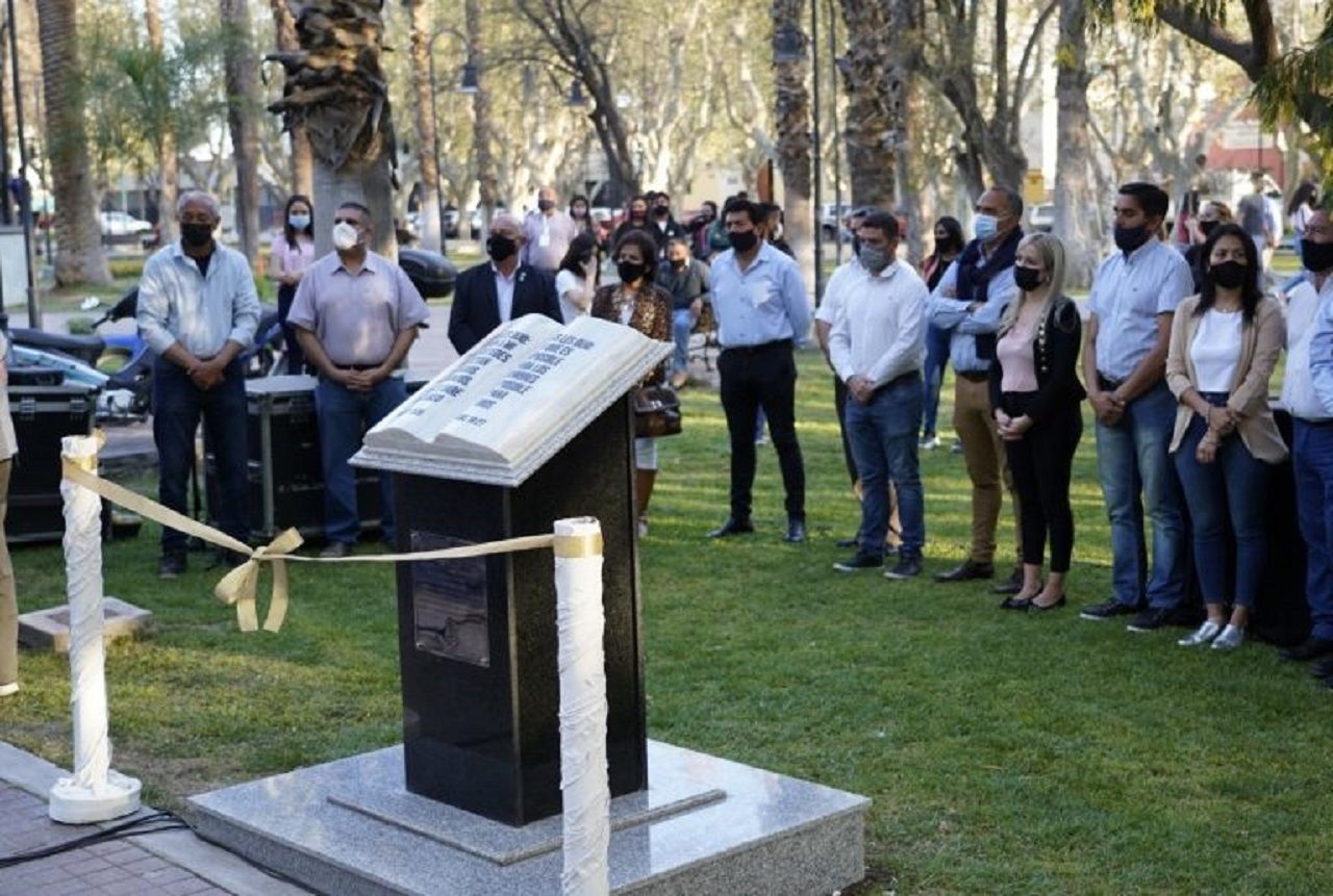 “Él les dijo: Lo que es imposible para los hombres, es posible para Dios”. Esa es una de las frases que quedó plasmada en el monumento de la plaza departamental "Bernardino Rivadavia", donde el Consejo de Pastores Evangélicos inauguró, con el aval de la intendencia, la escultura a la Biblia.
