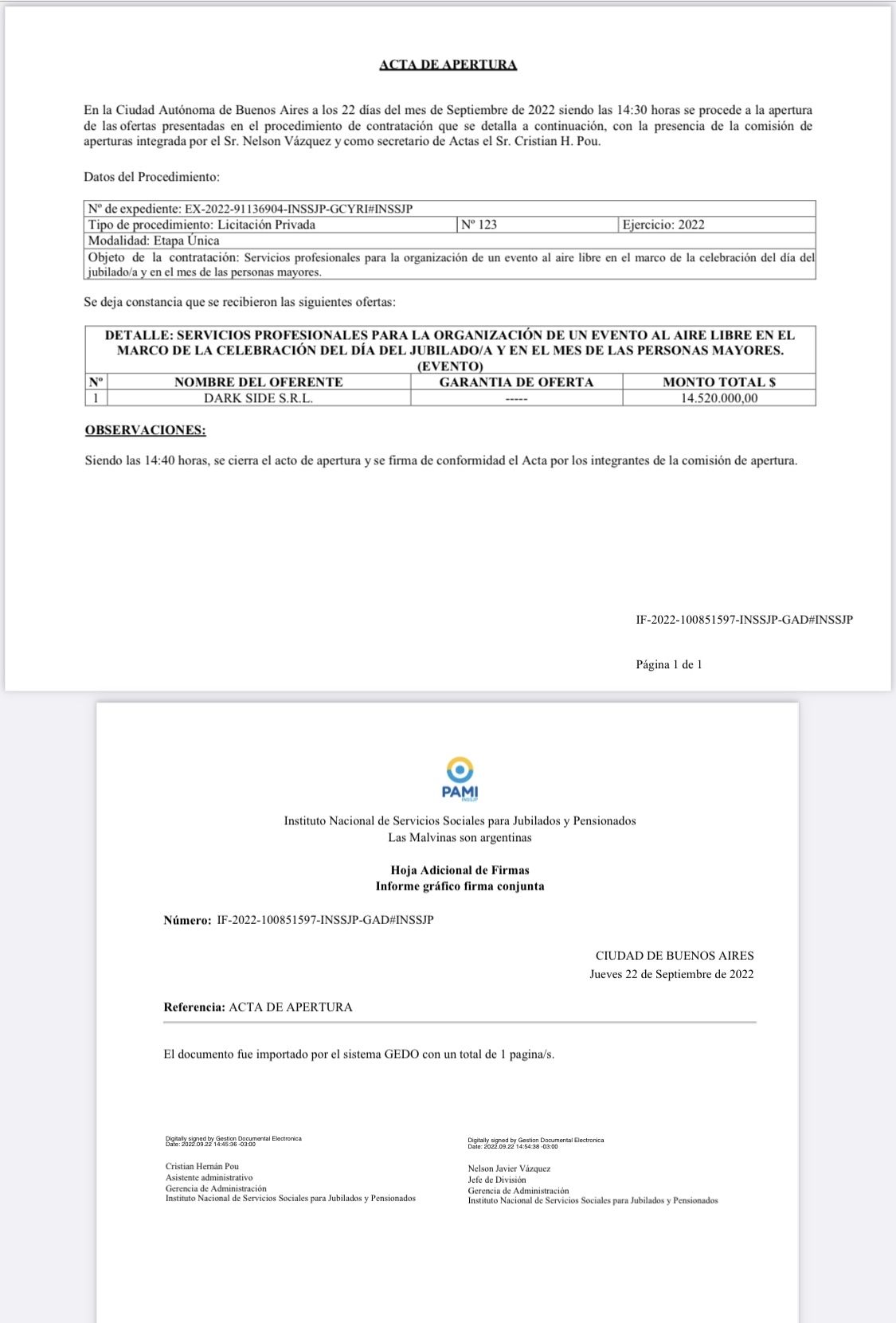 “Sospechamos que son también de La Cámpora y la licitación fue aprobada el 22 de septiembre cuando Volnovich firmó todas las resoluciones de nombramientos de militantes en el interior”, se quejan dentro del PAMI. “Es cierto que el organismo suele realizar actividades en este caso por el Día de los Jubilados, evento que tendría que haber estado presupuestado con anterioridad y además se realizaron junto con los municipios del conurbano donde pusieron más recursos los intendentes”, agregan voceros de los delegados sindicales.