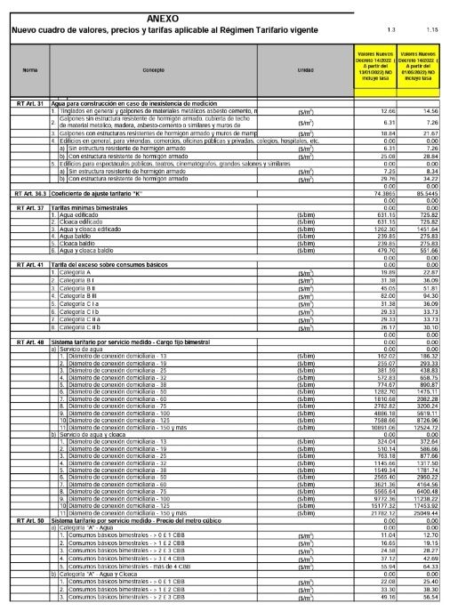 - De cuota fija más exceso (CFE), que determina la cantidad máxima de agua a consumir por parte de un usuario y, en caso de superar ese límite, se factura el excedente. Por servicio medido o volumétrico, que comprende un cargo fijo y otro variable según los volúmenes consumidos.