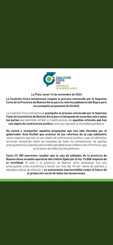Desde Juntos todo hace indicar que cerraron filas con el tema de la Caja Previsional del BAPRO. La cancha la marcó, la semana pasada, el PRO con un comunicado. Tras la conferencia de prensa de Kicillof, la Coalición Cívica comunicó que están a favor del diálogo aclarando que no van a acompañar el proyecto del Ejecutivo. La UCR todavía no se expresó sobre el tema aunque extraoficialmente fuentes del radicalismo afirman que van a ser orgánicos a la coalición opositora.