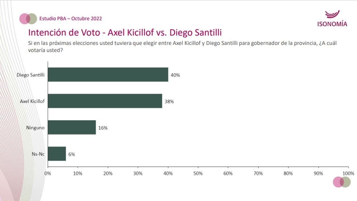 Una encuesta indagó la intención de voto en la provincia de Buenos Aires y generó extrema preocupación en el kirchnerismo. Es que la consultora Isonomía midió a los principales candidatos a gobernador y proyectó que ocurriría en un mano a mano entre Diego Santilli y Axel Kicillof. Se trata de un distrito clave donde La Cámpora, y Cristina Fernández de Kirchner, planean refugiarse en términos electorales a partir del próximo año.