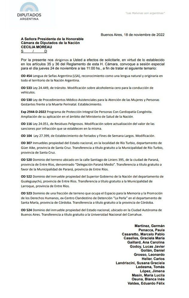 Además, a propuesta del Frente de Todos (FdT) se incluyeron la ampliación, para su aplicación en el ámbito del Ministerio de Salud, del Programa de Protección Integral de Personas con Cardiopatía Congénita y el reconocimiento de la Lengua de Señas Argentina (LSA), como una lengua natural y originaria en todo el territorio del país.