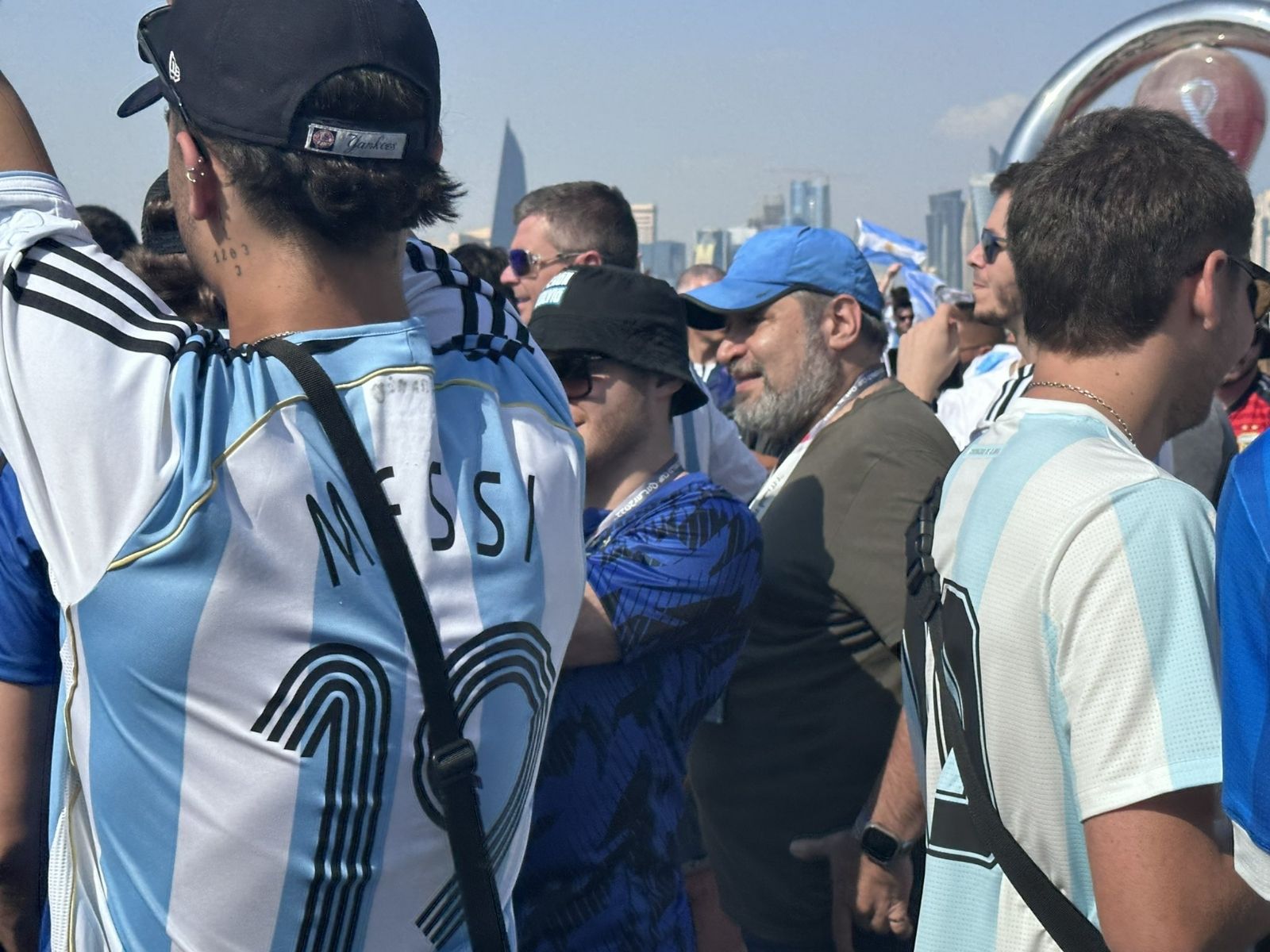 El sindicalista ultra K Víctor Santa María, líder del gremio de los porteros, estuvo presente en el banderazo argentino realizado este lunes por unos 2 mil hinchas en Doha. El sindicalista apareció en el día previo al arranque de la Selección en el Mundial de Qatar 2022.
