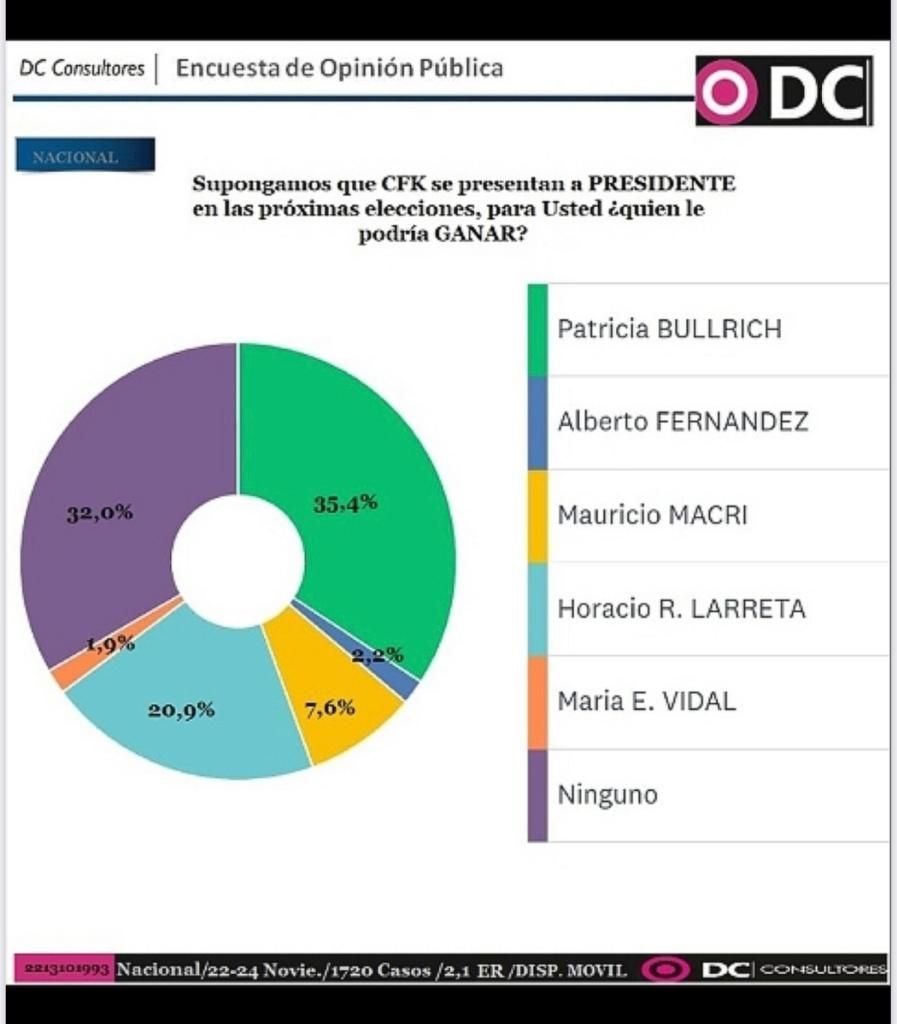 Y añadió: “No pusimos otros candidatos que ya están definidos, porque la intención era ver quién de esos candidatos le podía ganar. Siendo Patricia Bullrich la mejor perfilada”.