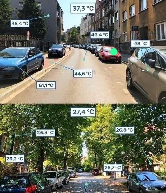 Estudios realizados muestran la contundencia de los beneficios del arbolado urbano como regulador de la temperatura; mediciones realizadas en las calles mostraron una variación de 9° promedio en el aire medido debajo de la canopia de un árbol en comparación con el mismo espacio sin árbol; 23° menos de diferencia en las veredas con sombra que las expuestas a rayos solares; y 14° en la comparativa del pavimento. Un ejemplo de esto lo vivimos en la reciente ola de calor sufrida durante el mes de enero donde las temperaturas llegaron casi a los 40°.