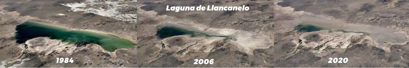 Mendoza posee diversos sistemas de humedales tanto al norte como al sur de la provincia. Algunos como la Laguna de Llancanelo, ubicada en el departamento de Malargüe, que fue declarada sitio Ramsar de interés mundial, actualmente está seca, básicamente, se puede observar con la infografía que realizamos a través de google earth. Sin embargo, el abandono por parte del estado provincial a dicho sitio, ha terminado en una sequía histórica del mismo, incluso con denuncias públicas de perforaciones subterráneas ilegales tanto de pozos petroleros cercanos como de usuarios de riego.