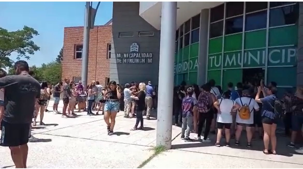 Casi un centenar de militantes de La Cámpora de Hurlingham, sin ninguno de los cuatro gremios municipales en el lugar, protestaron este viernes en las puertas del municipio, ubicado en Pedro Díaz al 1700, porque el intendente Juan Zabaleta revisó la situación laboral y los haberes de unos cuatrocientos empleados públicos que tenían incorporados módulos especiales por pertenecer a la agrupación que conduce Máximo Kirchner.