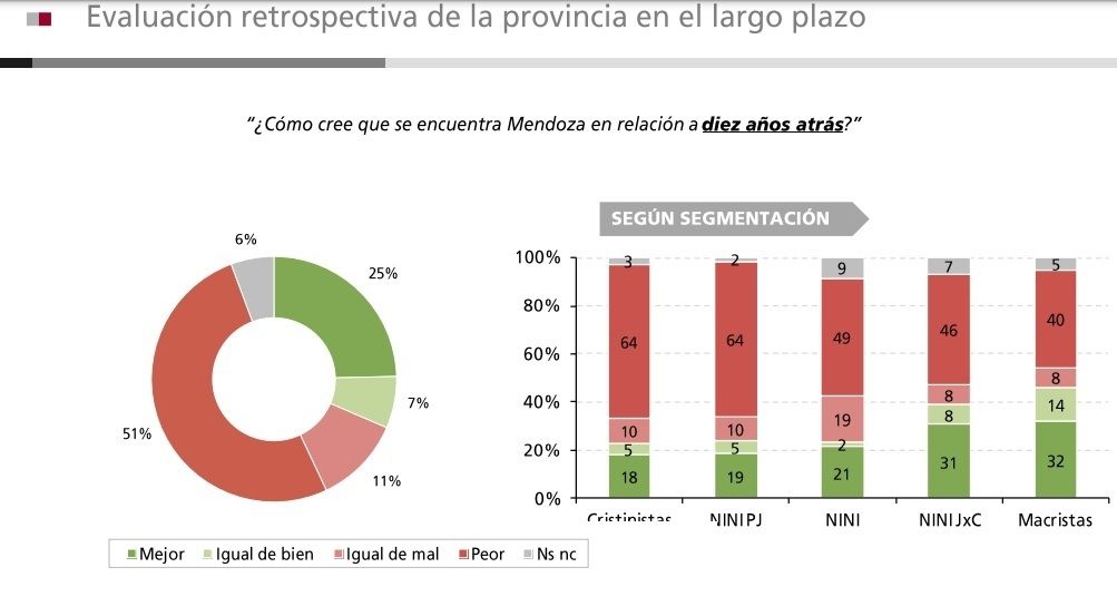 Una encuesta realizada por la consultora Poliarquía revela algunos datos particulares. Los mendocinos sienten que la provincia está peor que hace un año e incluso peor que hace 10. Una década atrás gobernaba el peronismo, en una de las gestiones que peor recuerdo dejaron. También los mismos consultados mantienen a Cambia Mendoza como principal opción política. Es decir, sienten que la Provincia está peor, pero mejor gobernada. O, ya en el marco de la especulación, que no hay mejores opciones electorales, pues en el mismo sondeo la mayoría se vuelca a favor de una opción que no existe y difícilmente se construya: un partido “nuevo” que no sea ni el peronismo, ni la UCR. La encuesta ponderó a Omar De Marchi y lo puso en competencia con todos, en particular con el propio Cornejo.