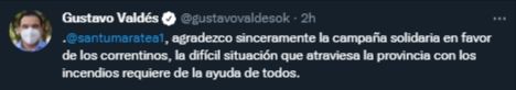 Incendios en Corrientes: Gustavo Valdés agradeció la ayuda e informó cómo está la situación