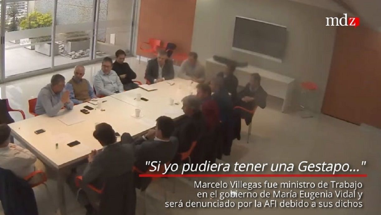 De esta manera, el legislador hizo referencia a la reunión realizada en junio de 2017 en la sede porteña del Bapro, de la que participaron además de Villegas otros miembros del entonces Gabinete bonaerense, junto a agentes de inteligencia y empresarios, donde se analizó la conformación de una mesa judicial para accionar contra los gremios.