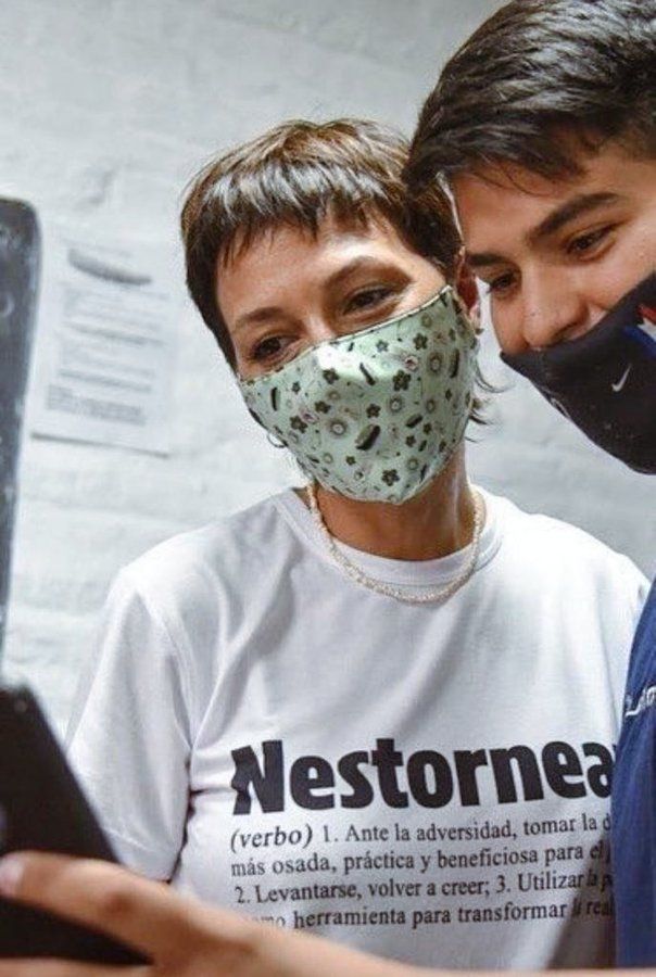 "Nestornear (Verbo) 1. Ante la adversidad tomar la decisión más osada, práctica y beneficiosa para el pueblo; 2. Levantarse, volver a creer; 3. Utilizar la política como herramienta para transformar la realidad", se puede leer en la remera de Mayra Mendoza que se volvió viral.