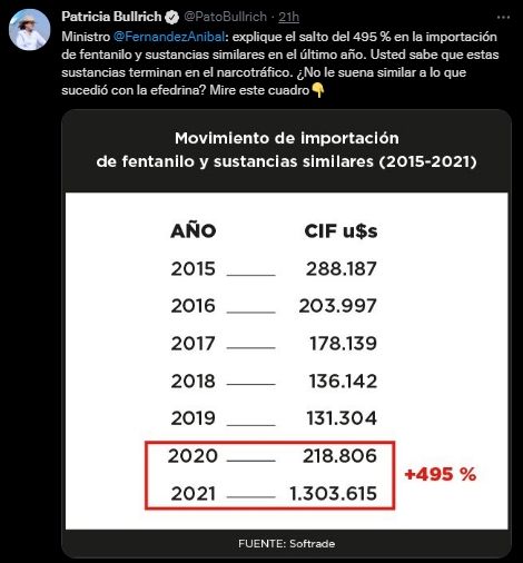 En tanto desde la bancada de la Coalición Cívica - ARI pidieron la interpelación de Aníbal Fernández y exigieron que brinde "de manera precisa y detallada" información sobre la cantidad de fentanilo importado desde 2017 y si hubo incautaciones de ese precursor químico en el último año.