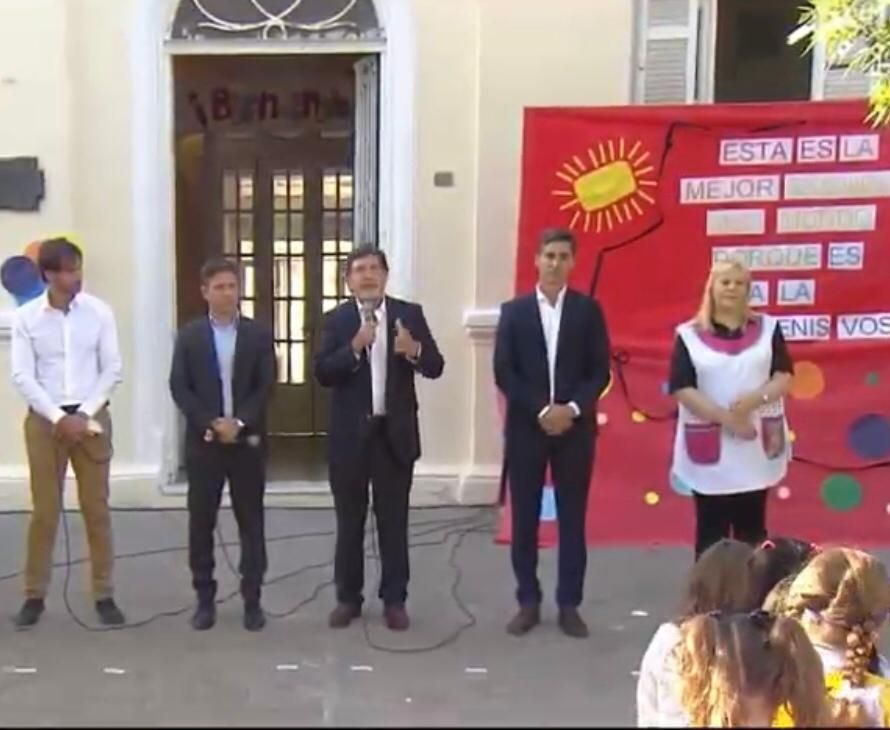 En el acto de apertura del ciclo lectivo, Kicillof estuvo acompañado por el Director General de Cultura y Educación, Alberto Sileoni; la secretaria de Educación de la Nación, Silvina Gvirtz; el administrador general de la Dirección de Vialidad de la Provincia, Hernán y Zurieta; el intendente de Punta Indio, Leonardo Angueira; las autoridades del establecimiento escolar y más de 400 estudiantes y miembros de la comunidad educativa de la ciudad de Verónica, ciudad Cabecera del Partido de Punta Indio.