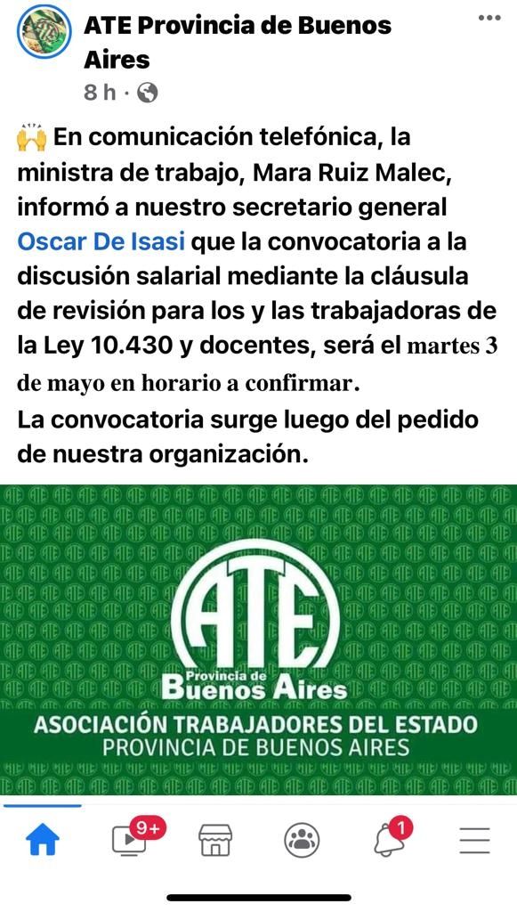 Por su parte, ATE provincia de Buenos Aires anunció a través de sus redes sociales que la ministra de Trabajo bonaerense Mara Ruiz Malec se comunicó telefónicamente con el titular del gremio para informarle del encuentro. Aclaran que la convocatoria se da luego del pedido de esa organización sindical.