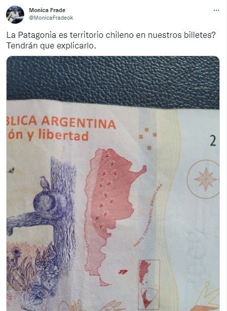 En concreto, la legisladora de la Coalición Cívica publicó en su cuenta de Twitter una imagen en la que se ve un billete de $1.000 pesos y manifestó: "¿La Patagonia es territorio chileno en nuestros billetes? Tendrán que explicarlo". Posteriormente, el tuit fue eliminado.
