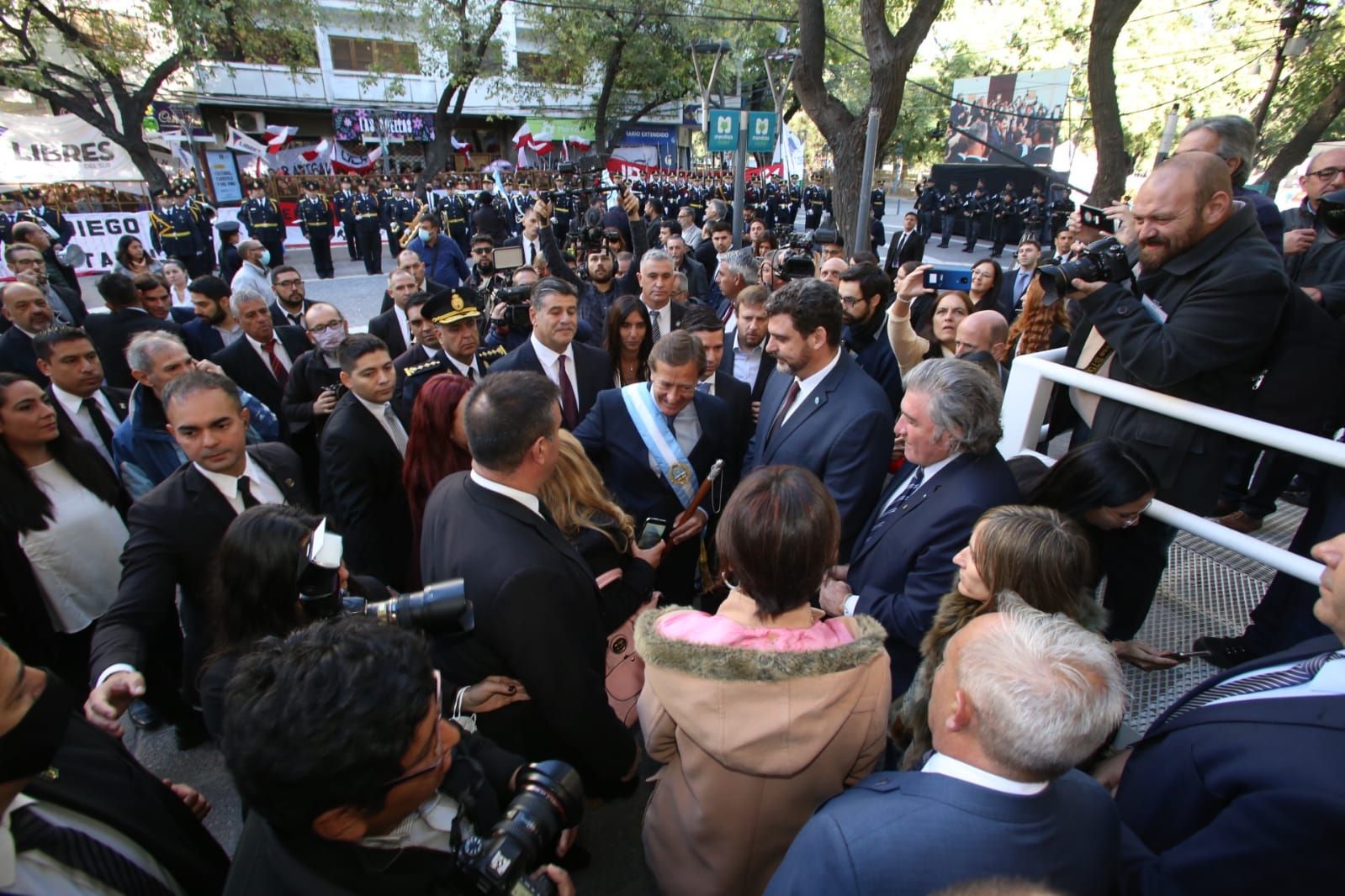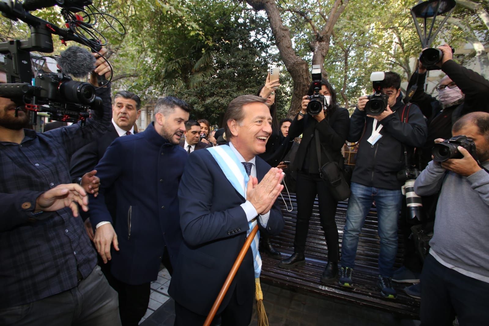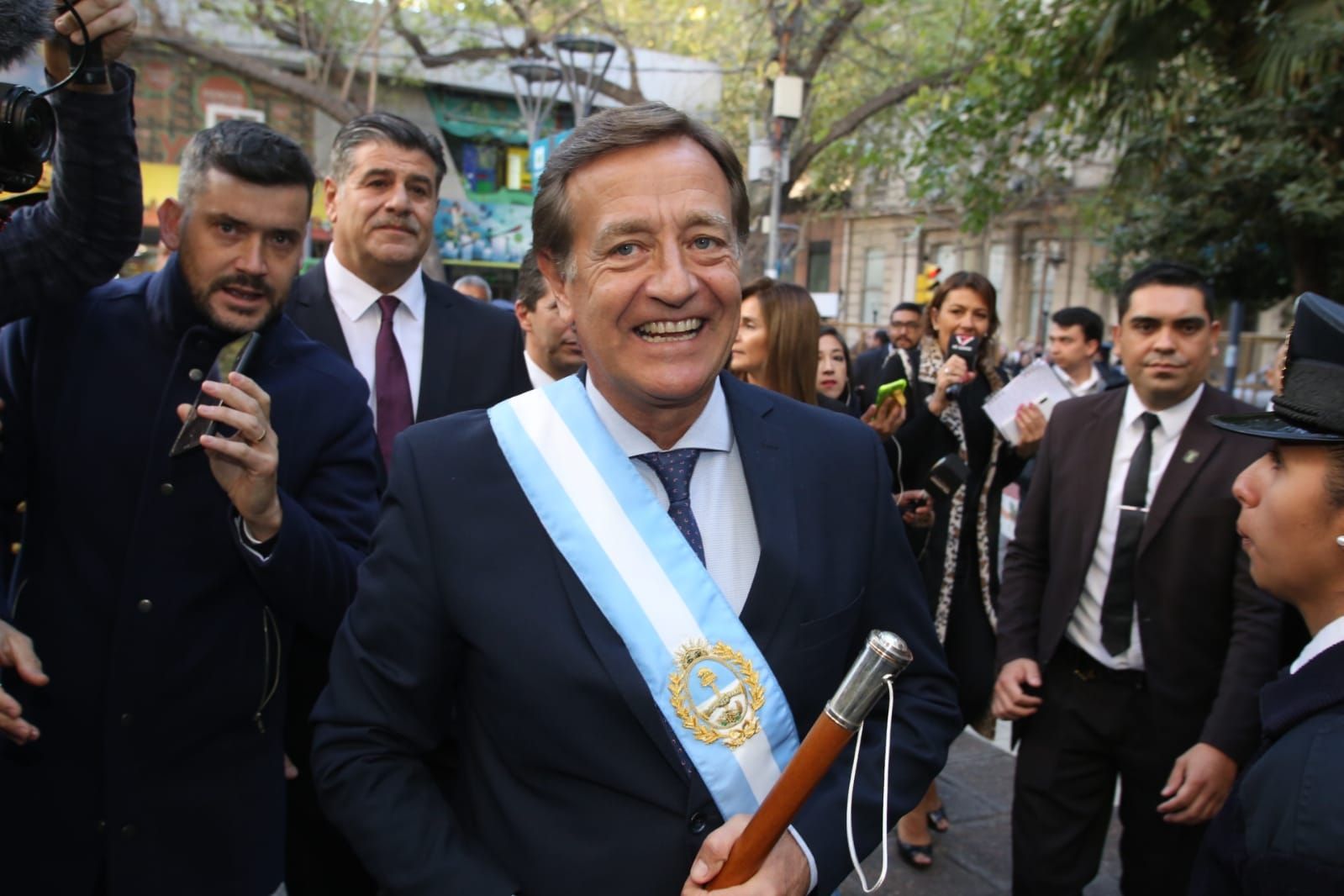 Escoltado por el vicegobernador Mario Abed y el presidente de la Cámara de Diputados Andrés Peti Lombardi, caminó hasta la Casa de las Leyes donde era esperado para dar su discurso en la apertura de sesiones ordinarias de la Legislatura.