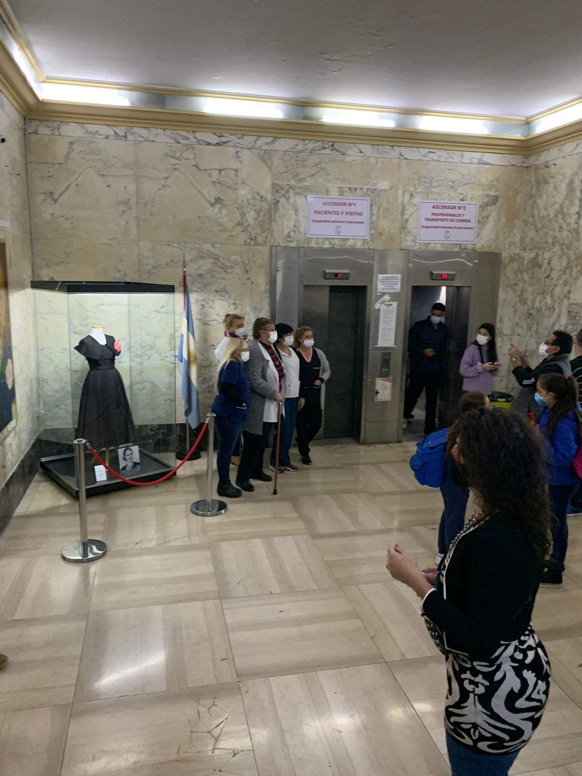 Acto en el hospital para exhibir un vestido de gala de Evita