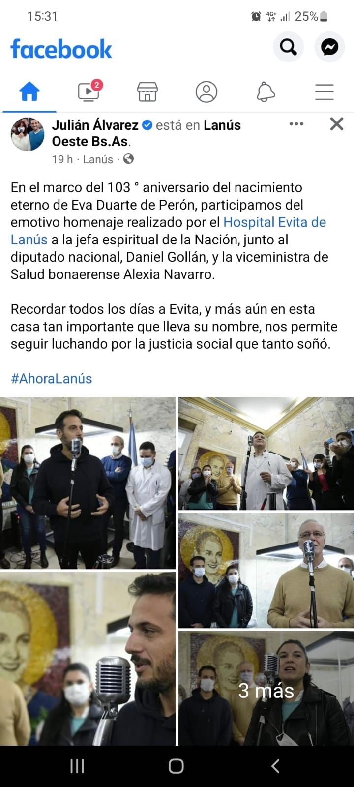 Del acto participaron, además de las autoridades del Hospital Eva Perón de Lanús, la viceministra de Salud bonaerense, Alexia Navarro, el diputado nacional por la provincia de Buenos Aires y ex ministro de Salud, Daniel Gollan, y Julián Álvarez, ex viceministro de Justicia del último gobierno de Cristina Fernández de Kirchner, actual concejal y referente de La Cámpora, que quiere ser intendente de Lanús.