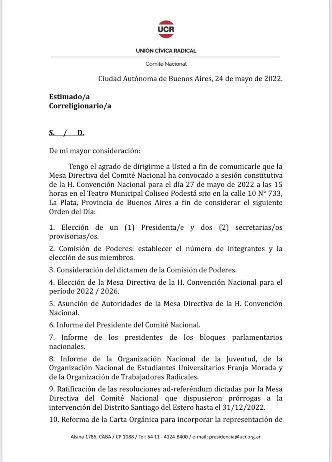 Será la primera vez en la larga historia del partido centenario que empiece puntualmente una reunión de la Convención Nacional y además deban terminar a una hora preestablecida. Los oradores serán Morales, el nuevo titular del organismo y hermano del neurocientífico y los líderes parlamentarios Mario Negri y Luís Naidenoff. Se había especulado con discursos del otro Manes y Martín Lousteau. Pero quedaron descartados.