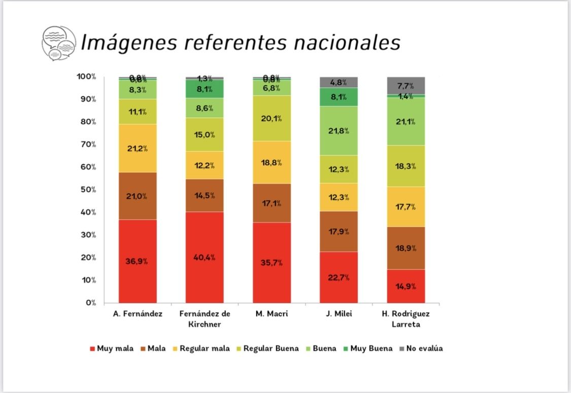 Entre los positivos la consultora divide muy buena, buena y regular buena. Ahí el líder de la La Libertad Avanza suma más en los dos primeros: casi un 30% contra un 22,5% del mandatario porteño. De todas formas, se suele considerar un error que no estén en la medición Patricia Bullrich o Facundo Manes. Eso desvirtúa los favoritismos de los consultados, sobre todo sin la presidenta del PRO que es una figura muy taquillera en casi todos los sectores sociales y generacionales.