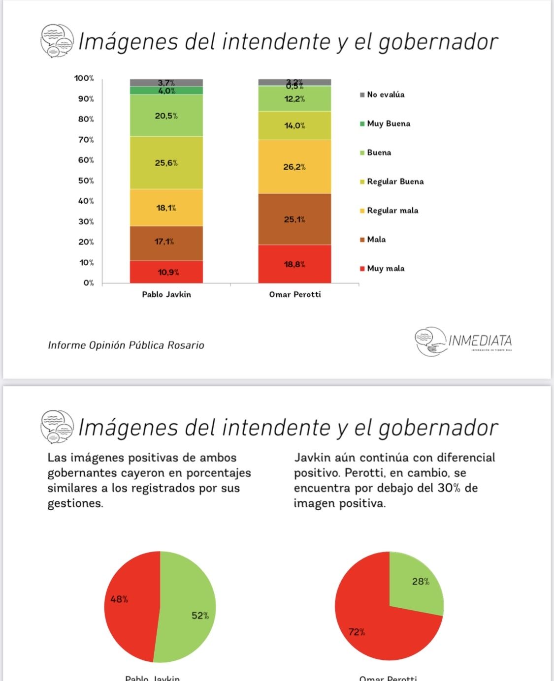 Respecto a la valoración de las tres categorías de gestión, se percibe que la administración de Pablo Javtkin, bajó 11 puntos desde la última medición y la negativa es de 63% contra un 37% de adhesión. Omar Perotti está peor. También bajó 10 puntos desde noviembre del año pasado y el rechazo a su gobierno es de 74% y apenas un 26% de positiva. Y el récord lo tiene, como era previsible, la gestión de Alberto Fernández con 80% de negativa.
