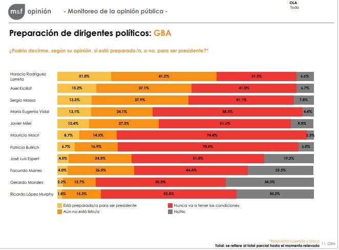 En este apartado, Rodríguez Larreta obtuvo una aprobación de 37,8% en CABA, 21% en GBA y 24,3% en PBA.