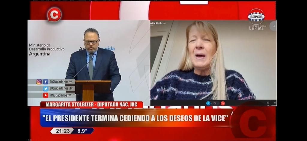 Al preguntarle, en el hipotético caso que Milei entre a Juntos por el Cambio, ¿cuál va a ser su postura? Margarita Stolbizer respondió: “No puedo pensar sobre una cosa que no va a ocurrir. Es imposible que entre a Juntos por el Cambio, porque Milei no tiene voluntad y tiene un proyecto distinto”.