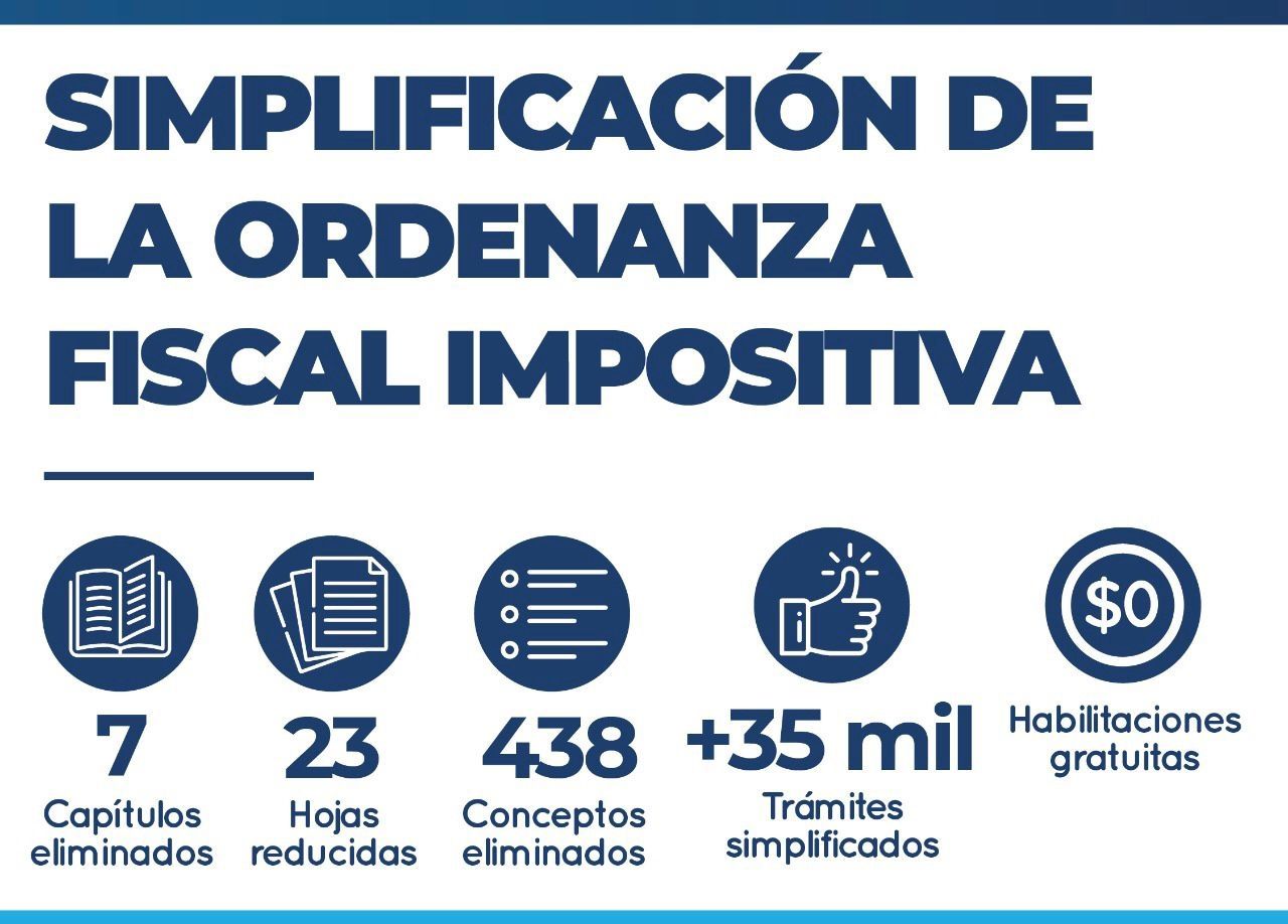 Por último, la simplificación de la ordenanza fiscal impositiva es otra tarea que se llevó a cabo en pos de incentivar la inversión. Se eliminaron 7 capítulos, redujeron 23 hojas, eliminaron 438 conceptos y simplificaron más de 35 mil trámites.