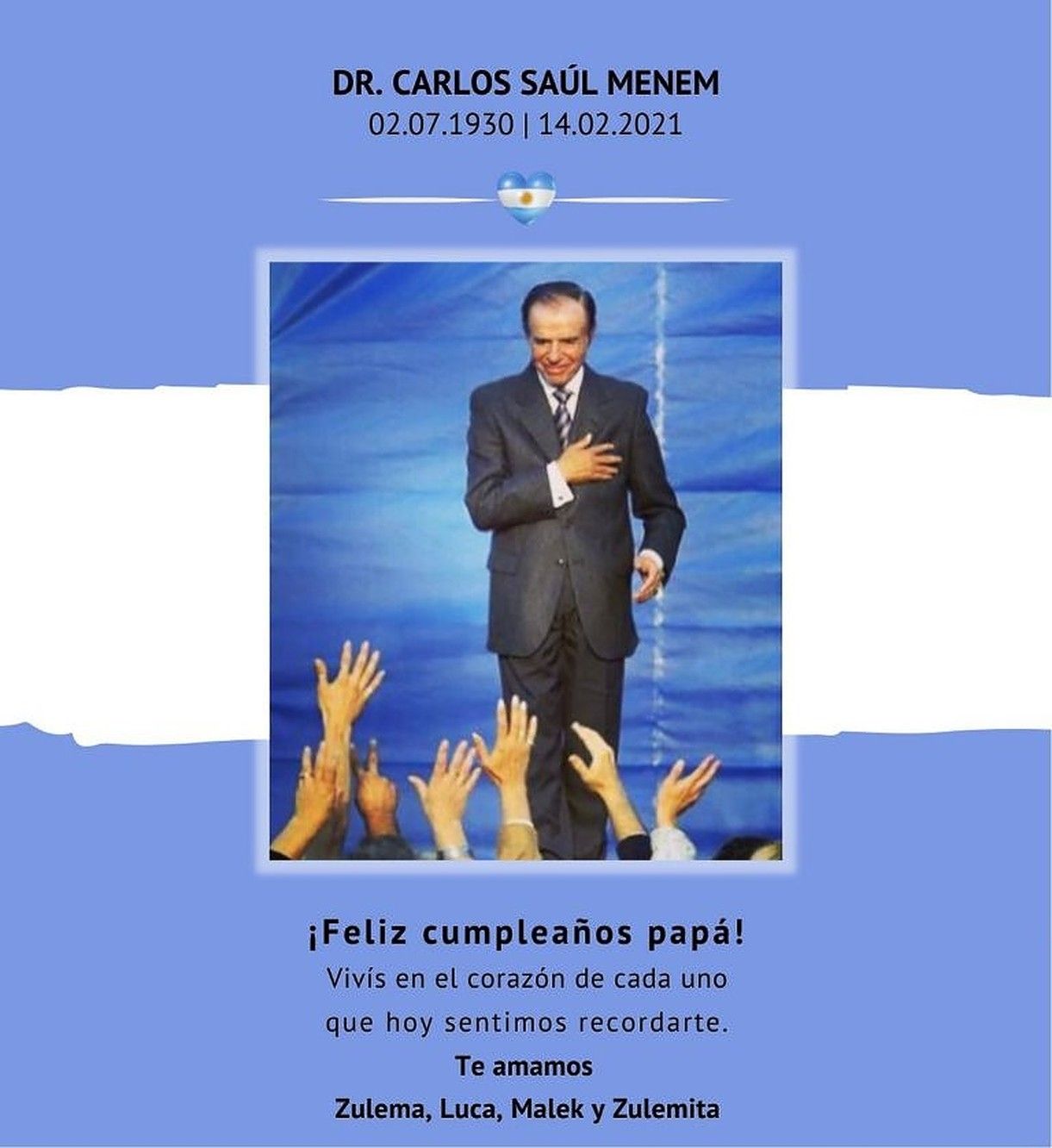 El emotivo saludo de la familia de Carlos Saúl Menem, a los 92 años de su nacimiento