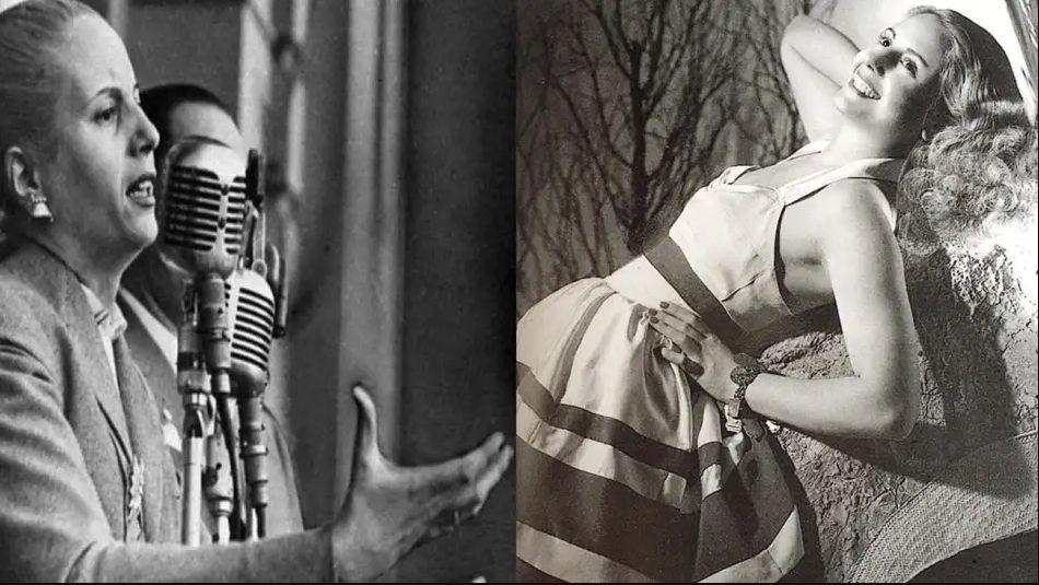 La joven nacida el 7 de mayo de 1922 en Junín, fue a probar suerte con su carrera de actriz a Buenos Aires (acompañada por su madre). Tras varios audiciones, shows y películas, conoce a Juan Domingo Perón y formarían una de las parejas más emblemáticas de la historia argentina. Esto abrió paso a Evita o Eva Perón, con tailleurs de oficina, modestos rodetes y sus emblemáticos discursos al pueblo trabajador.