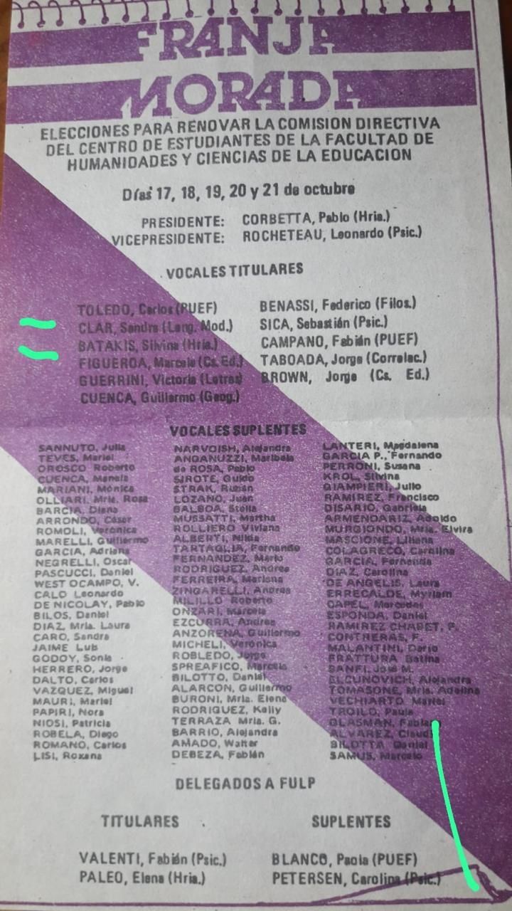 Los correligionarios más conocidos en esa lista eran el presidente del Centro de Estudiantes, Pablo Corbetta, quien luego pasó a trabajar políticamente con el intendente de San Isidro, Gustavo Posse. El vicepresidente fue Leo Rocheteau, que luego abandonó las filas radicales para desembarcar en en GEN de Margarita Stolbizer. Llego a ser concejal por la ciudad de La Plata y actualmente está de regreso en la UCR. También militaba Diego Rovella, actual presidente del radicalismo platense y presidente del bloque de concejales de Juntos, y Oscar Negrelli, secretario de Coordinación del Municipio.