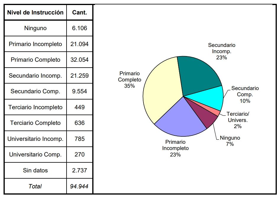 Este estudio reporta que la mayoría de los hombres privados de su libertad cuentan con un nivel educativo muy bajo ya que 88% de ellos cuentan sólo con estudios básicos (primaria 58% completa e incompleta y secundaria 33% completa e incompleta) 7% ninguna educación, bajando el porcentaje al 10% si se termina la secundaría y solo al 2% si tiene terciario o universitario.