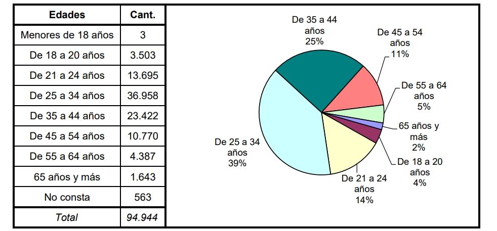 En conjunción, el 57% de ellos fueron detenidos antes de cumplir 34 años de edad.