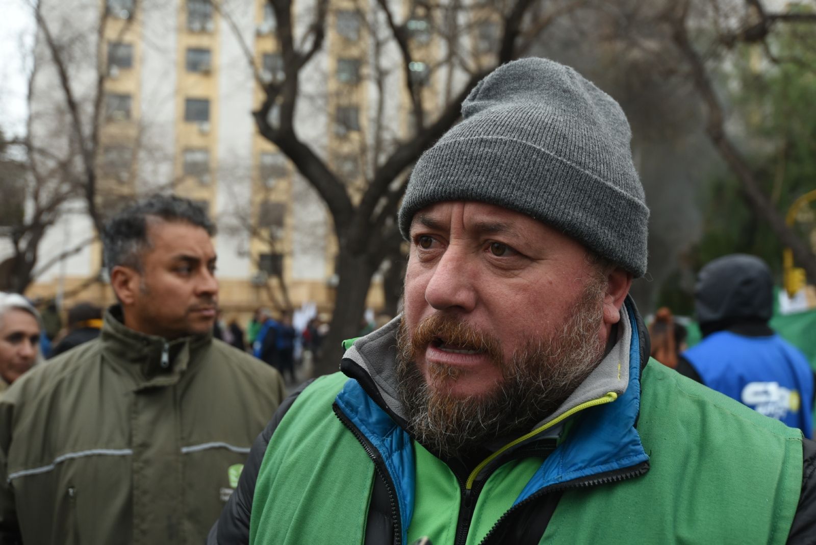 El secretario general de la Asociación de Trabajadores del Estado (ATE), Roberto Macho, fue detenido este martes acusado de cinco delitos por entorpecimiento de la circulación del transporte público. Adriana Iranzo, secretaria adjunta del gremio y pareja de líder sindical, también fue aprendida. Ambos se encuentran en la Comisaría 3°, en Ciudad. Las detenciones tuvieron lugar mientras realizaban una protesta en la calle Bandera de Los Andes frente al Hospital Humberto Notti.