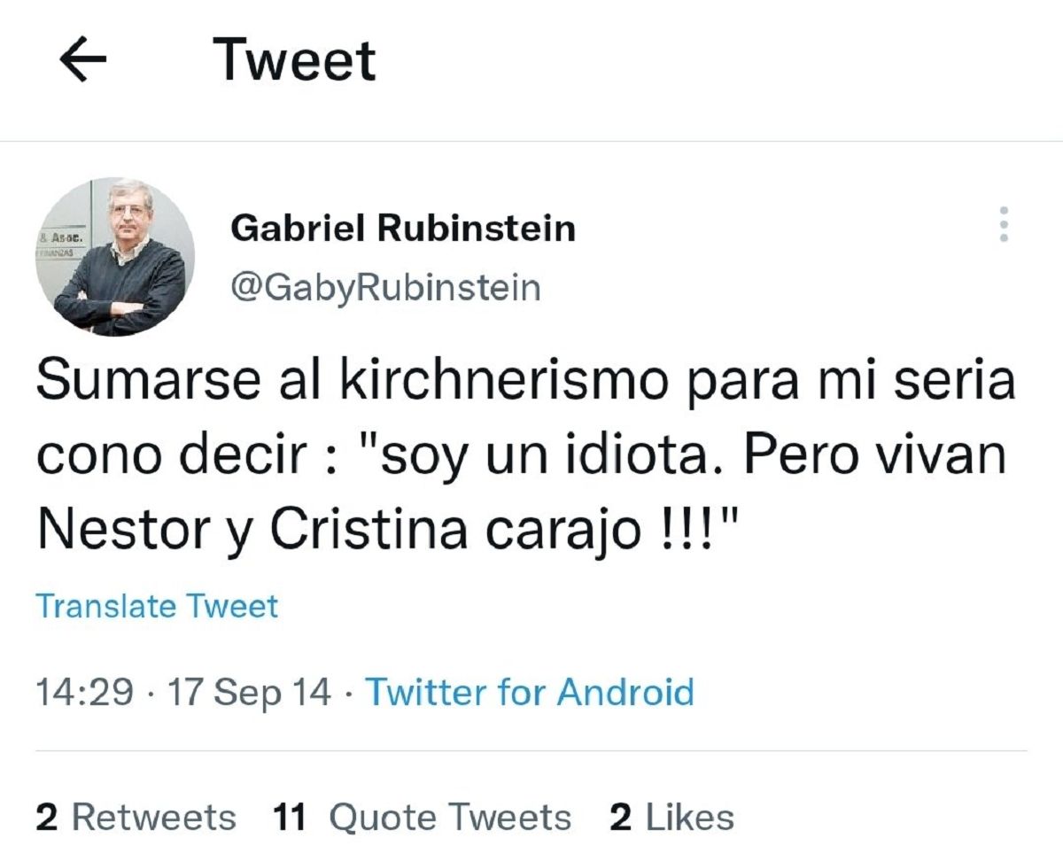 Gabriel Rubinstein y su curioso pedido de disculpas al kirchnerismo