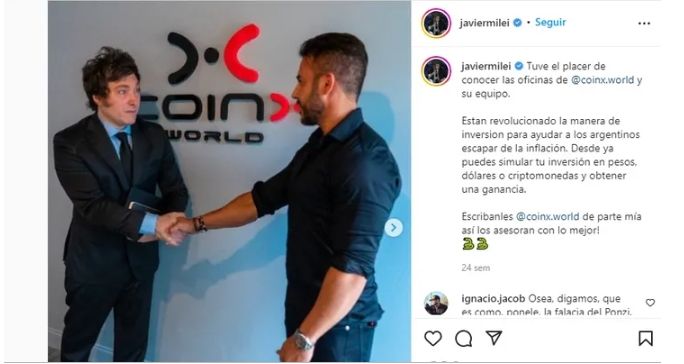 El líder de la Libertad Avanza se incorporó como influencer de las redes de Coinx a fines del año pasado y se lo podía ver en Instagram donde realizaba diferentes posteos recomendando la plataforma y sugiriendo el asesoramiento. "Están revolucionando la manera de inversión para ayudar a escapar de la inflación", comentaba.