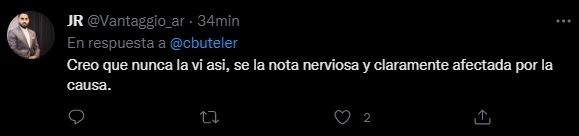 En cambio, desde la otra vereda destacaron la atípica forma en la que se condujo. "Creo que nunca la vi asi, se la nota nerviosa y claramente afectada por la causa", escribió un internauta.