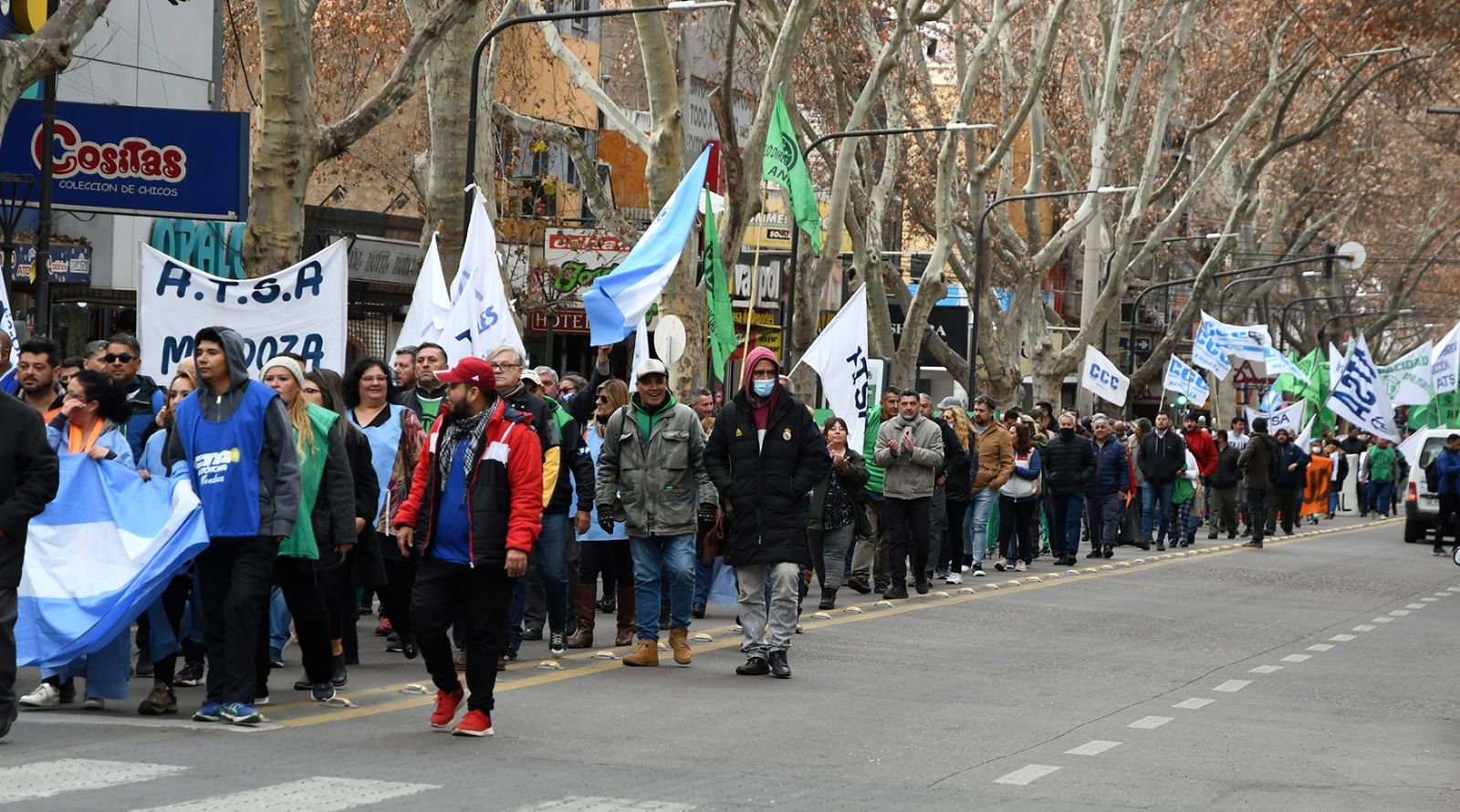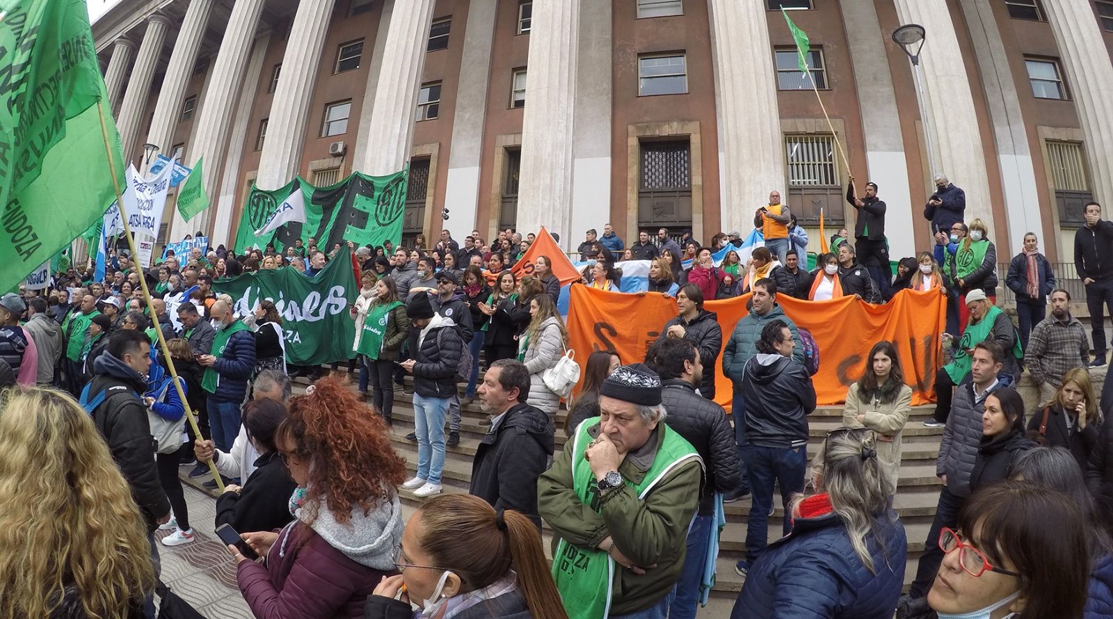 Representantes y ATE y otros gremios mendocinos se concentraron desde las 10 de este miércoles en la peatonal Sarmiento y desde allí marcharon por el centro mendocino hasta el Palacio Judicial reclamando por la liberación del dirigente sindical que fue encarcelado este martes, imputado por cortes de calles y el entorpecimiento del normal funcionamiento de los transportes por tierra, previsto en el artículo 194 del Código Penal.