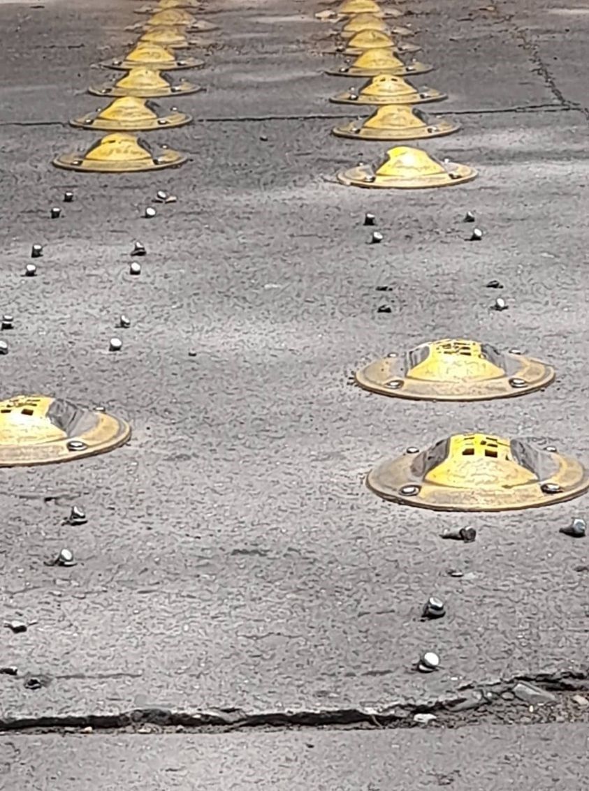 Existe un gran negociado con la implementación de tachas como reductores de velocidad, algo que está prohibido por la ANSV (Agencia Nacional de Seguridad Vial). Su área de seguridad para motos declara: las tachas deben prohibirse como reductores de velocidad por el riesgo a las motos dado que su superficie no tiene adherencia, por la gran altura el borde desvía la rueda y trayectoria, ponen varias filas con lo que agravan dicha circunstancia.