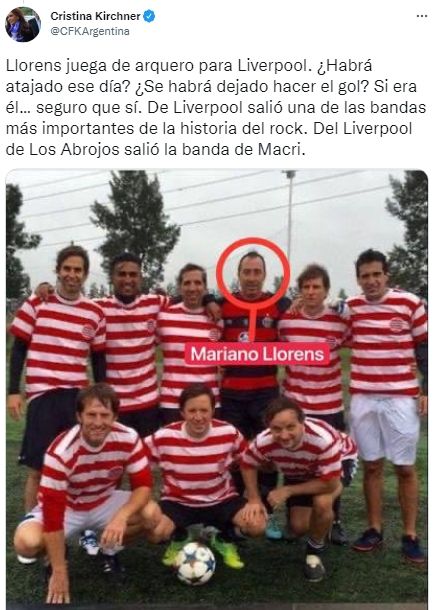 Y completó: "Llorens juega de arquero para Liverpool. ¿Habrá atajado ese día? ¿Se habrá dejado hacer el gol? Si era él… seguro que sí. De Liverpool salió una de las bandas más importantes de la historia del rock. Del Liverpool de Los Abrojos salió la banda de Macri".