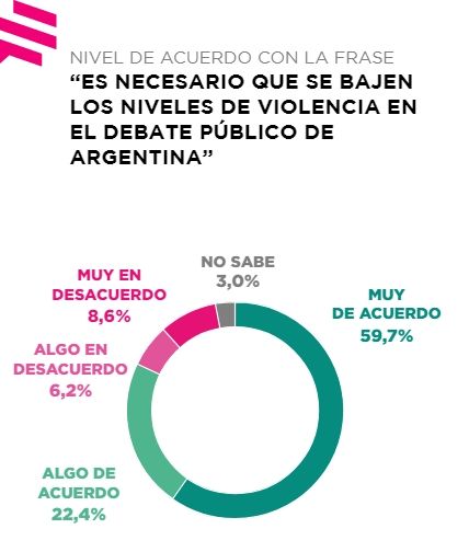 "Cuando se le pregunta a la opinión pública que sector influye positivamente para neutralizar y disminuir los discursos de odio, la primera opción en aparecer es 'ninguno' con un 32%.La sociedad mira el atentado a través de sus sesgos ideológicos, pero eso no evita que también demanden pacificación y acuerdos democráticos", agregan.