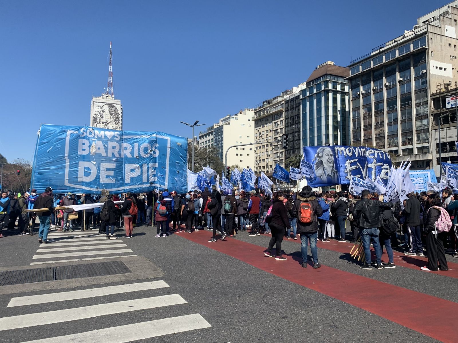 Con bombos, pancartas y trompetas, otras organizaciones sindicales, nucleadas en la CGT y en la CTA, y otros movimientos sociales como la CCC, el Movimiento Barrios de Pie, Somos Patria, Peronismo Militante y Jubilados Unidos y Organizados se concentraban sobre la avenida 9 de Julio y su intersección con Independencia y con la avenida Belgrano.