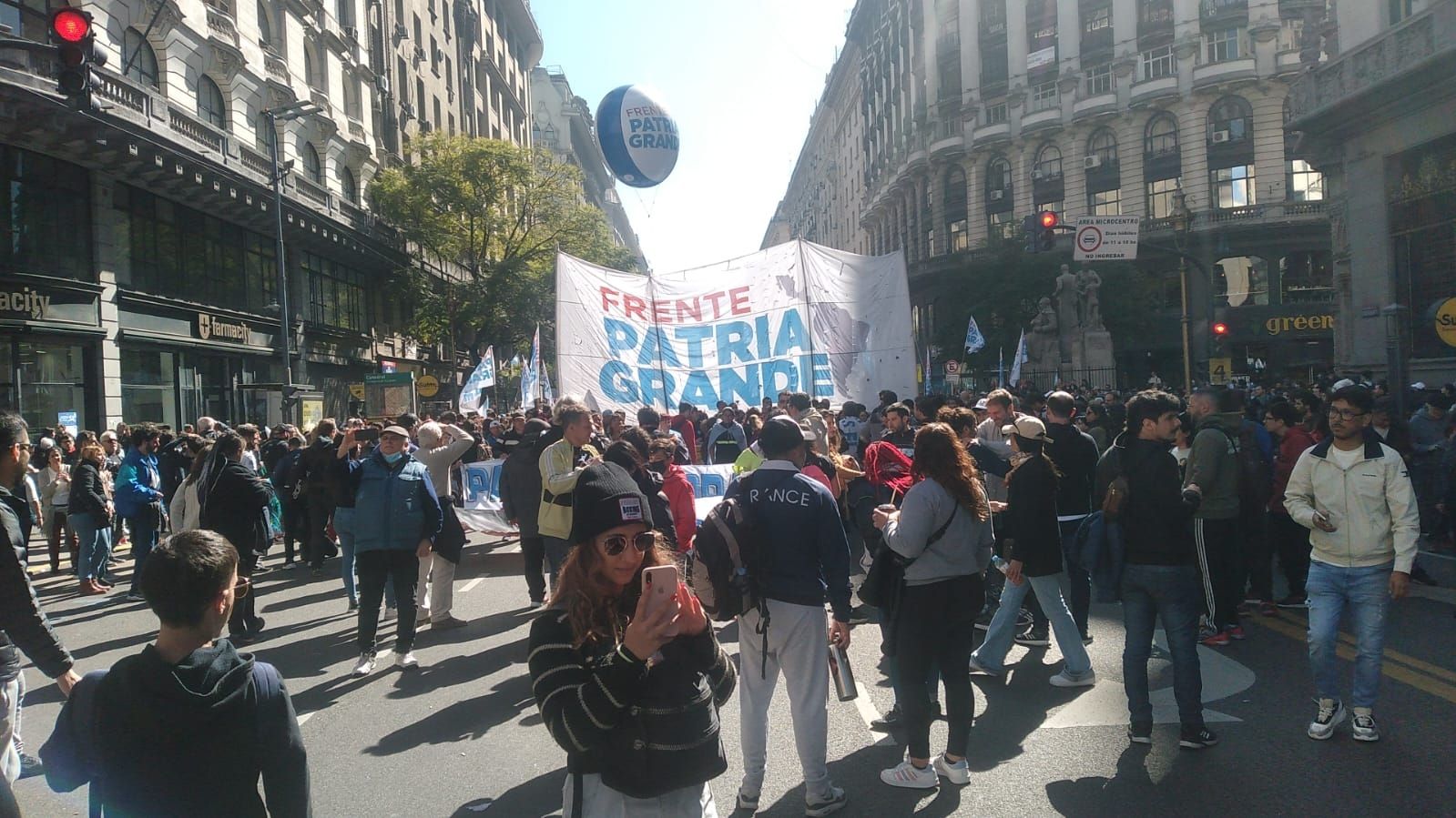 Las columnas de manifestantes también se ubicaban sobre la avenida de Mayo y en las diagonales Sur y Norte, que desembocan en la Plaza, donde se armó un escenario frente a la Casa Rosada.
