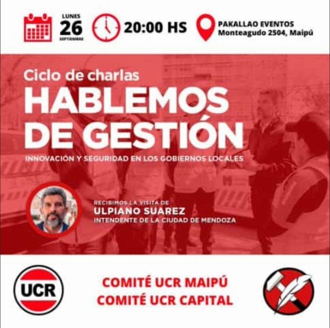 El intendente de la Ciudad de Mendoza el radical Ulpiano Suarez, ya comenzó sus recorridos por la provincia por su posible precandidatura a gobernador para 2023 y sus próximas paradas serán en los departamentos donde gobierna el PJ. Hoy irá al comité que tiene el radicalismo en Maipú para hablar de “innovación y seguridad en la gestión de los gobiernos locales”. Las charlas que vendrán serán en Tunuyán, Lavalle, La Paz y Santa Rosa, con una agenda abierta.