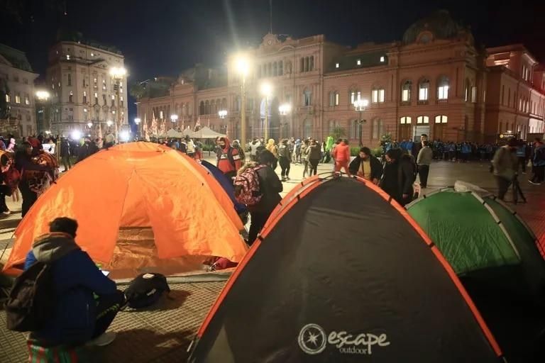 En conferencia de prensa, los dirigentes piqueteros confirmaron el acampe y esperan que el Gobierno los reciba: “Estamos listos para discutir a las 6 de la tarde -en una nueva asamblea- y, si no hay repuesta, nos vamos a quedar todos los días que sean necesarios", aseguró Eduardo Belliboni, líder del Polo Obrero.