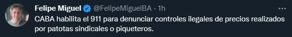 Miguel dijo que aquellos que se comuniquen tendrán a su disposición a la Policía de la Ciudad para que "se haga presente en los comercios y reestablezcan el imperio de la ley".