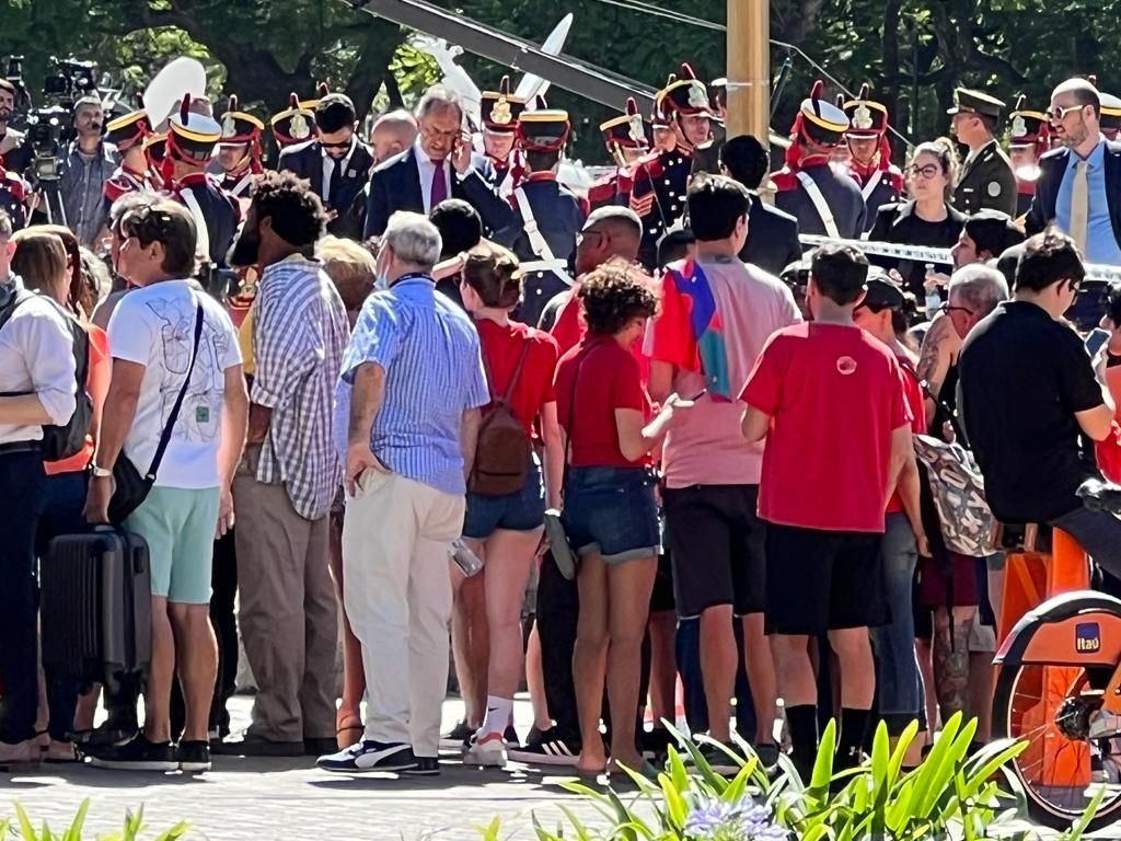 Esta mañana, Lula realizó la tradicional colocación de una ofrenda floral en el monumento al Libertador General Don José de San Martín, en la antesala de la reunión que mantendrá con el mandatario Alberto Fernández.