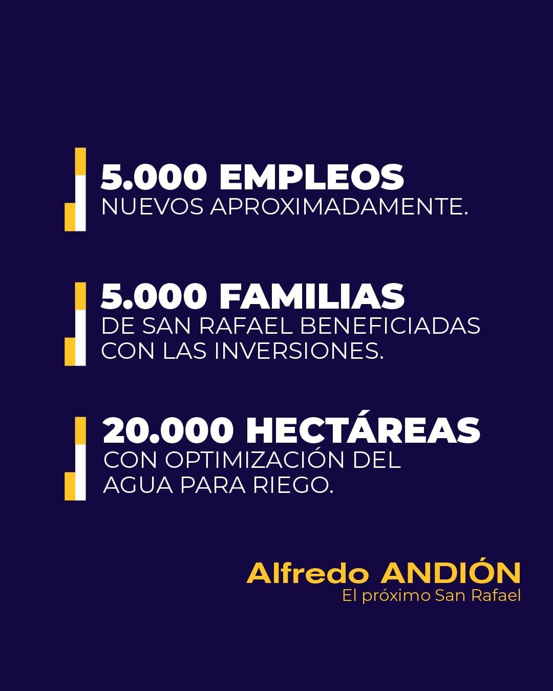 Antes de que termine enero, el intendente de San Rafael, Emir Félix, firmará el decreto para anticipar las elecciones municipales. Por lo tanto, el 30 de abril la ciudadanía del departamento irá a primarias, abiertas, simultáneas y obligatorias (PASO) para elegir a candidatos a intendente y concejales. Con la proximidad de esa fecha, la carrera electoral ya se lanzó. En ese sentido, el empresario Alfredo Andión, que como contó MDZ, competirá dentro del Frente Cambia Mendoza apoyado por un sector de la UCR, del PRO e independientes, propone usar parte del dinero de Portezuelo del viento para que los productores de San Rafael puedan invertirlo en mejoras para los sistemas de riego, tecnologías o lucha contra las heladas. Es decir, un financiamiento a 5 años con una tasa de interés muy baja, que crearía 5.000 puestos de trabajo.