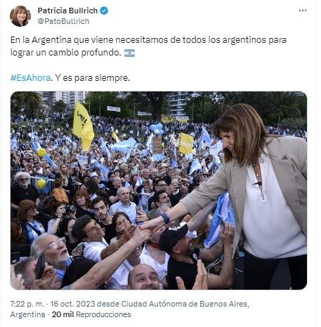 Patricia Bullrich empieza a cerrar su campaña con Milei como su "enemigo" principal